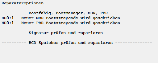 Wurden alle Reparaturen durchgeführt erfolgt eine weitere Prüfung der Bootumgebung.