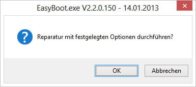 Entspricht die vorausgewählte Liste der gewünschten reparaturoptionen kann im folgenden Dialogfenster OK geklickt werden.