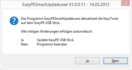 EasyPESmartUpdate aktualisiert die EasyTools auf dem EasyPE USB Stick.