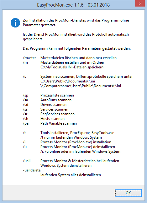 Das Programm EasyProcMon.exe bietet fünf Funktionen: