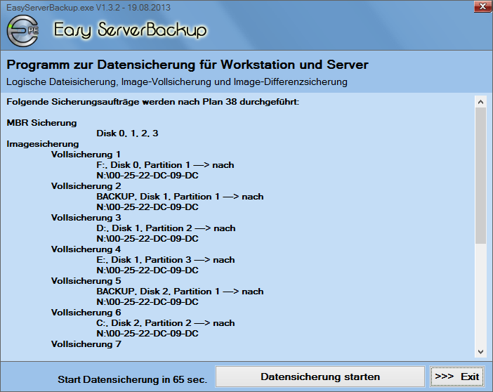 Bei der vollautomatischen Datensicherung am Server oder auf einer Workstation erscheint dieses Dialogfenster nicht.
